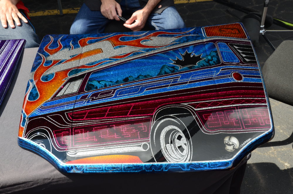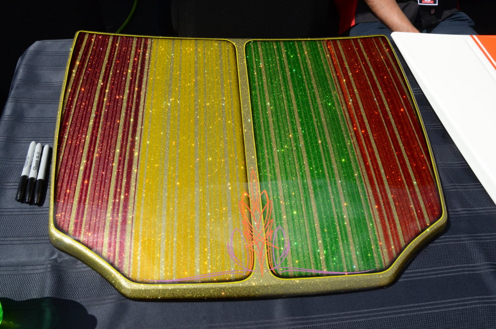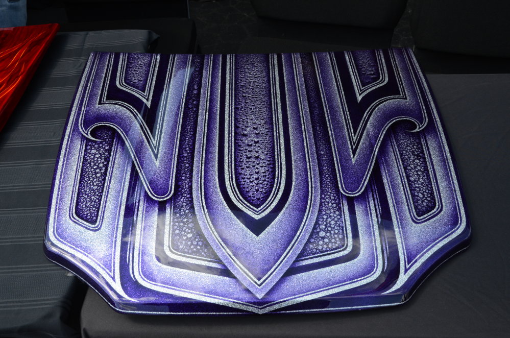 Finally, the main attraction of the 3M Woodward display was a spread of 10 small scale hoods, all of which had been decorated by 10 of the world’s top custom car painters.