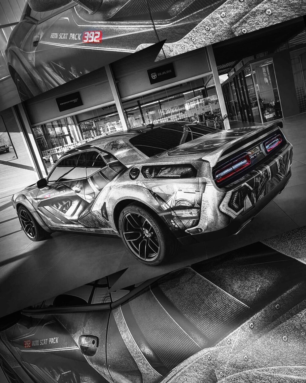 We’re not going to lie, when it comes to wraps we can be a bit fickle. Sometimes the wrong wrap can take away from the pure mopar muscle. But when a wrap is done right, it can not only make a car all the more appealing; it makes us appreciate it in a totally different way. This was definitely the case with the “Heminator.” Hailing all the way from Germany, this Challenger R/T Scat Pack is inventive and exciting.