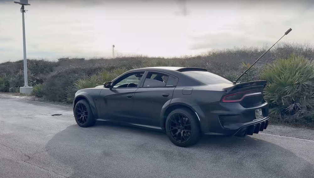 Rather, it looks like a proper road-eating Charger, thanks to the presence of a variety of mods adorning the exterior. Those include, in this case, a Hellcat widebody kit, which is perhaps the best way to go with any of these models that didn’t come equipped with such gear from the factory. To that rather attractive base, Atlantic Beach Customs added a full-blown satin black vinyl wrap that looks absolutely sinister. Truthfully, there’s probably no better way to achieve that kind of intimidating look, and it’s capped off with a total blackout job throughout that extends to the wheels.