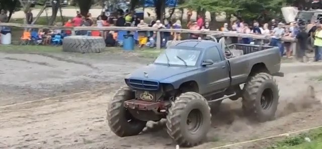 This week’s Muddy Monday video features a super-modified Dodge Dakota playing in the slop at the Wolf Springs Mud Bog. There is no modification list available for this Dakota, but it clearly has substantial suspension work to get the truck way up into the air and to make plenty of room for these monster truck tires. We can also see that this truck has a bunch of stuff in the bed, but that extra weight doesn’t seem to have any impact on this Dakota’s mudslinging abilities. Really, I’m not 100% sure that this isn’t a half ton truck chassis with a Dakota body, but it is still one wicked truck.