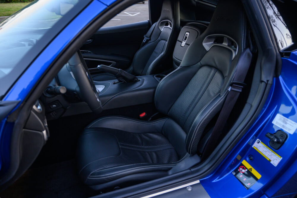 To complement the car’s classic paint, Dodge fitted the Launch Edition with a set of shiny polished five-spoke aluminum wheels. There’s also a GTS-specific double-vented hood up front. Underneath the carbon fiber and aluminum body, most everything else was essentially identical to every other Viper of this vintage. That includes the rip-roaring 8.4-liter V10 producing 640 hp and 600 lb-ft of torque, along with a proper 6-speed manual transmission.