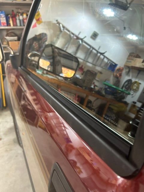 Middle of the pic shows the two screws that hold on the oddly shaped plastic window bumper for the vertical track.