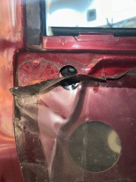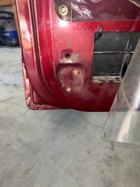 2. Remove the inner door panel. They are held on with 9 metal scissor clips that go in a hole (see pic below). You get a pry bar next to the clip and pry the panel away. Do all 9 clips (see pic below). Feed the power lock module through the hole and put panel aside.