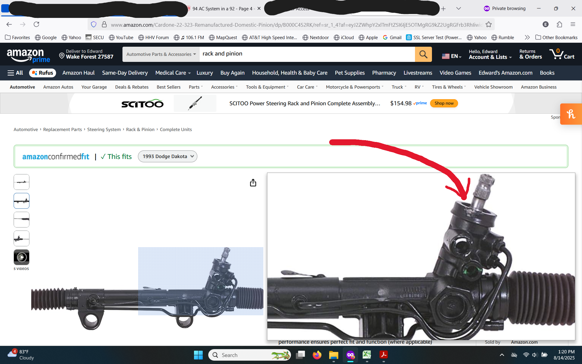 For the first good news, I found where the leak is. The bad news, it isn't just a loose fitting. It is the rack itself leaking at the top where it meets the steering column (see arrow in screenshot below). The second good news, the leak seems to be slowing considerably. Perhaps as I get more of that Lucas Stop Leak circulating it is doing its job. I have, at the very most, 12 oz of that Lucas in there. Probably 8 - 10 is realistic. The instructions say it will need 12 - 24 oz. I don't believe in snake oil remedies but I researched that Lucas Stop Leak extensively. I read reviews and watched a bunch of You Tube vids and, to my surprise, it received pretty good marks. So i think I will give that Lucas more time to do its thing. Maybe I'll suck out the fluid from the reservoir and refill with the Lucas instead of just waiting for it to drip out.