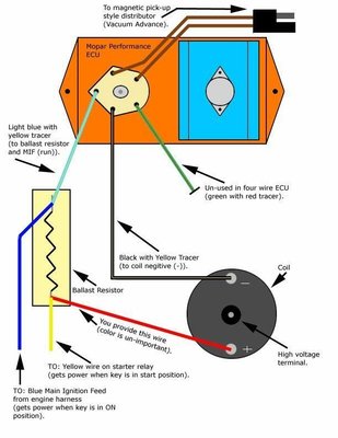 Later, due to EPA pressures, Chrysler upgraded the ignition system to include a lean burn capability. There were lots of problems with the lean burn system. Grouch is suggesting you replace your points system with he early mopar electronic ignition.