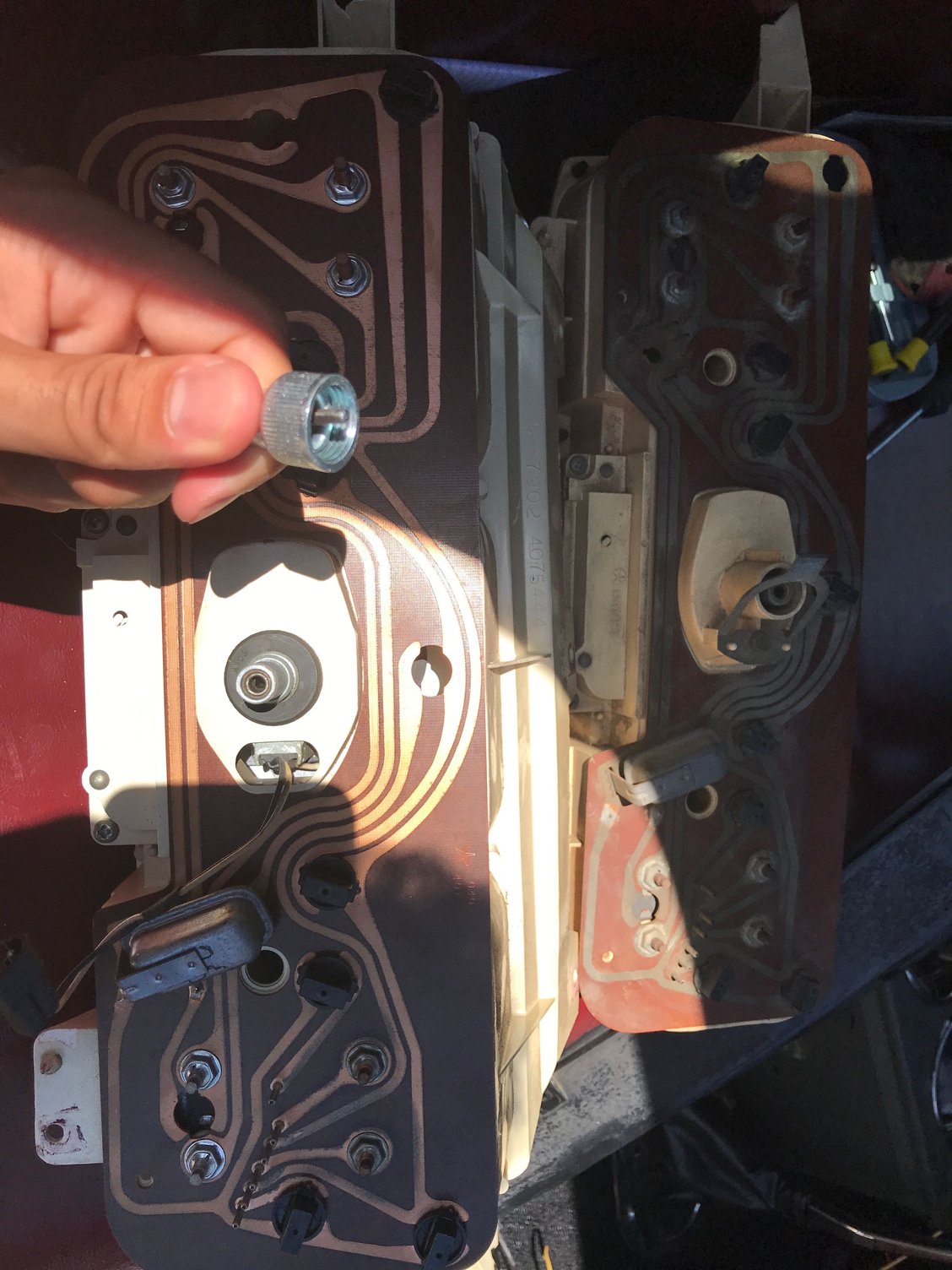 Instrument cluster that was in my truck on bottom- one I got out of junkyard on top. New cable I bought in photo as well Nothing holds this cable in place. It slides right off The nut is too big to go around the plastic casing The cable that was already on the truck. Also has a a threaded nut on the end.