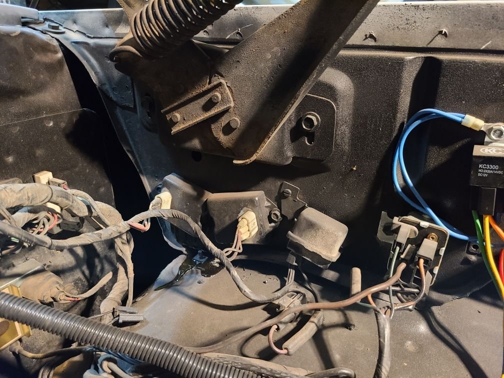 Does anyone know what modules the two together are? The two left most modules. They are on the drivers side and don't have triangle plugs like the ignition or regulator modules that I can find.