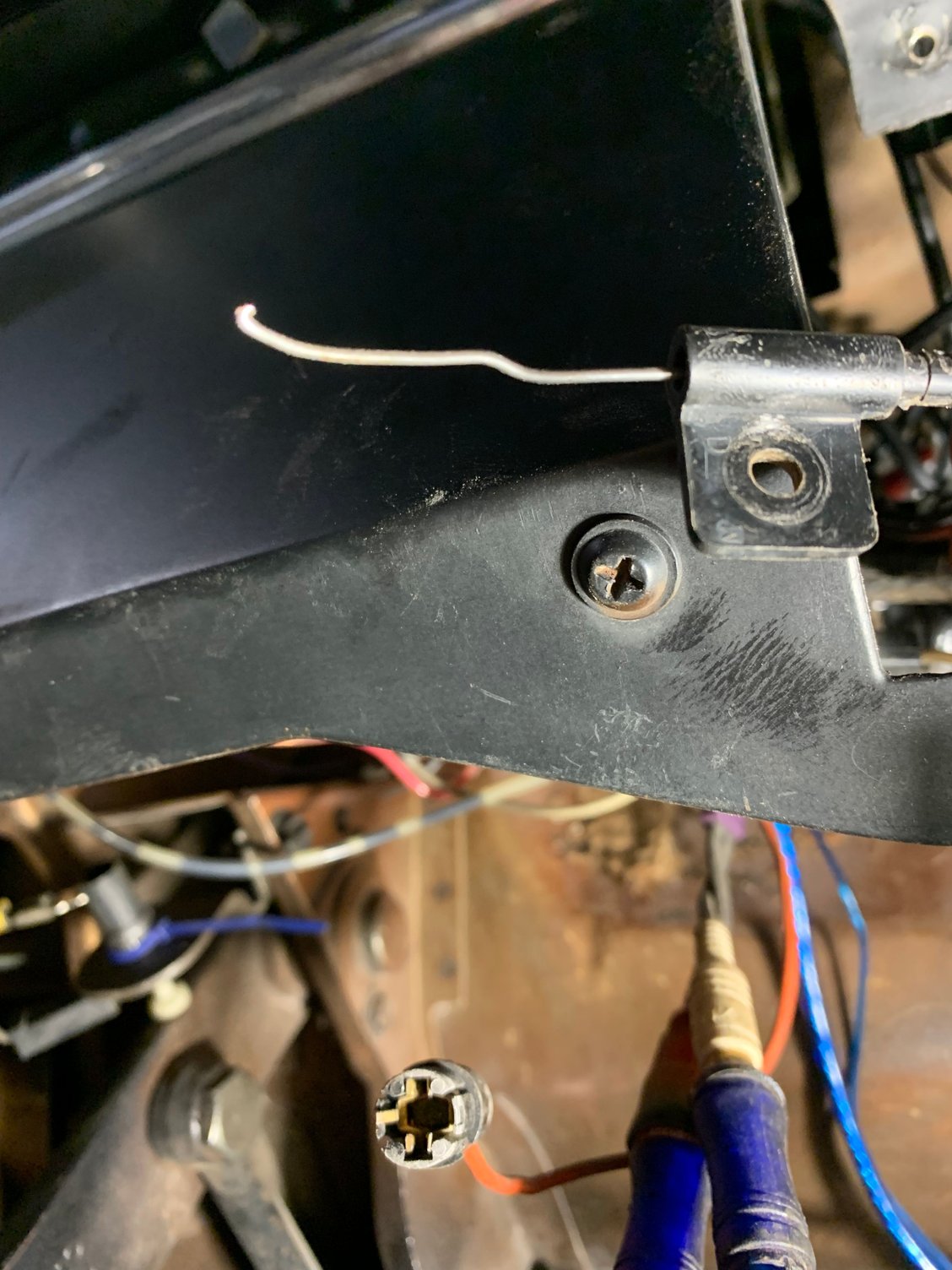 I was replacing the heater controls bezel. I’m missing the clip that keeps the temperature cable from slipping off the control lever. Thought I would squeeze the wire a little tighter and broke it off. Way to go me!! What’s the best way to attach the wire to the control? It would still be long enough if I can get it affixed. Or do I have to replace the cable?