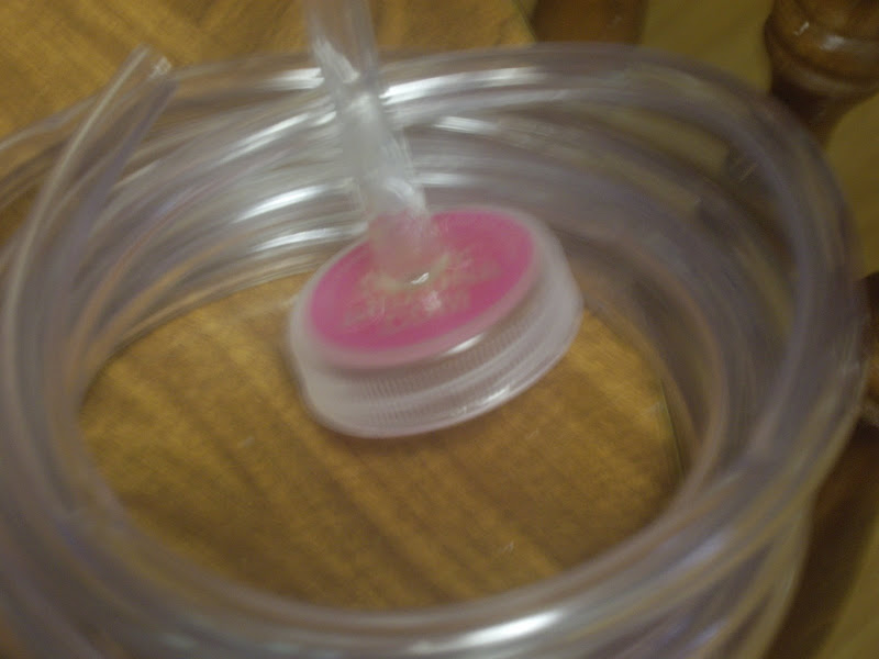 so now at this point i needed to connect a hose to the cell, i decided to do this through the cap by cutting a hole in the cap and then sealing the hose around the hole(the hose was $2.88 with tax at home depot for 10ft of 1/4" Inside diameter(ID) clear hose)