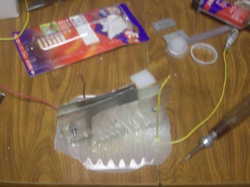 Then i took and i made a 4 plate electroysis cell, two + and two - plates and mounted them together in such a way that they were arrranged in +-+- pattern inside the cell