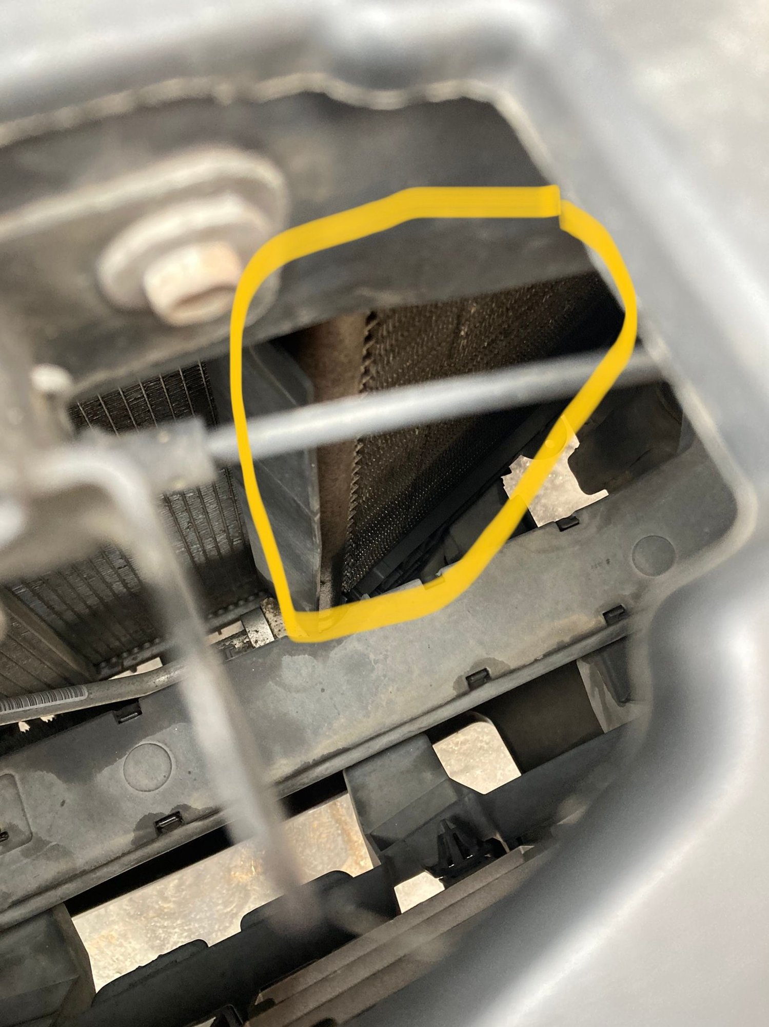 I am looking at buying a 2009 Chrysler Aspen, it has a 5.7 hemi and I recently test drove the car. That was my first experience with a hemi and what an engine! Incredible. There was a "cooler" that was leaking in the engine bay, lower front drivers side, maybe it is the evaporator? I don't know. I've looked at part diagrams, but I came away more confused. Does anyone know what part this is? It looks like it is leaking, I guess internally, as it appears dark on the lower section of the part.