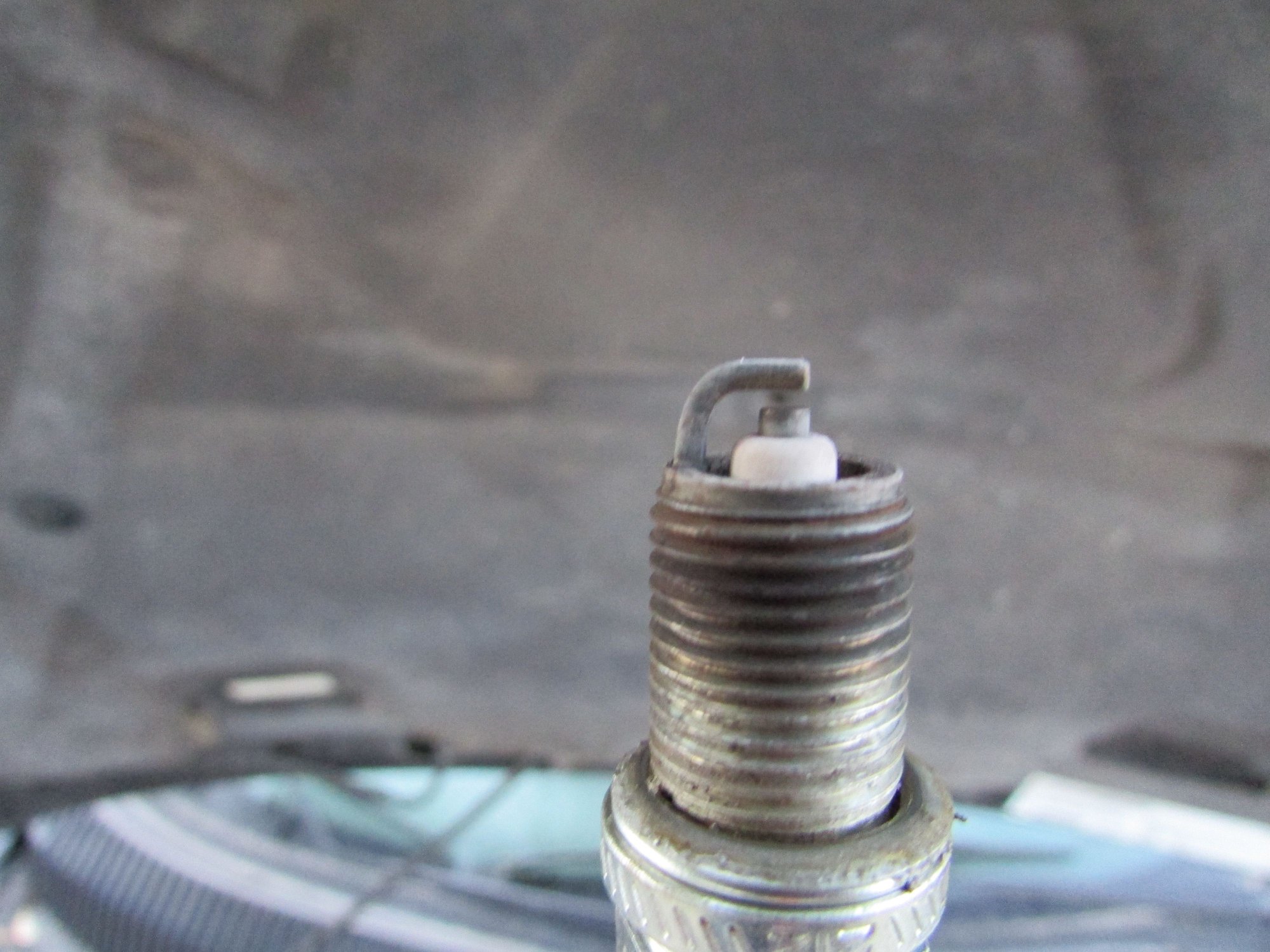 Ok good idea to have posted plug photos. Photo-1 cyl 4 plug, is that a piece of carbon between the center electrode & ground lug, or just a out of focus black something or other in the back ground?