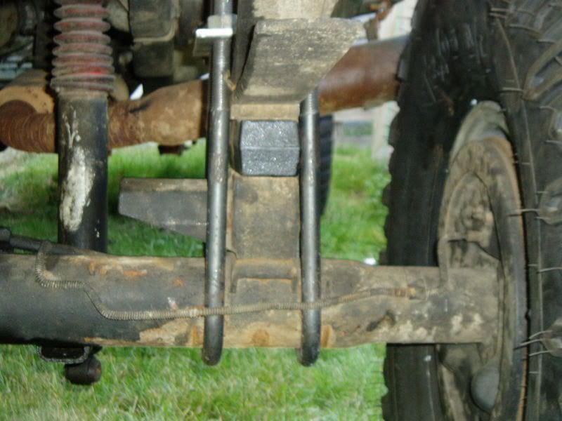 i custom made these u bolts for my truck and made them to remove the bracket on the bottom that kills ground clearness. ** please note that the plate on the top is just temorary so i could move my truck out of the garage without the rear falling out. there 3/4 inch lol, i think i over killed it alittle