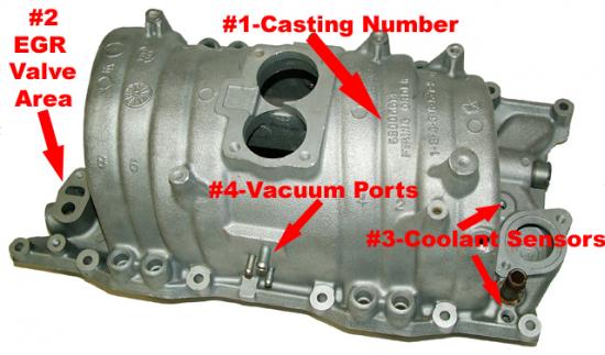 the coolant sensors, t-stat housing, air temp sensor, heater hose pipe, and wp bypass all mount to the intake. my 01 has a TINY little hole for the temp sensor. probably only 5/16" threads. i thought about the T off of it, but since its so small, i think it would be hard to T and it wouldn't be in the water flow.