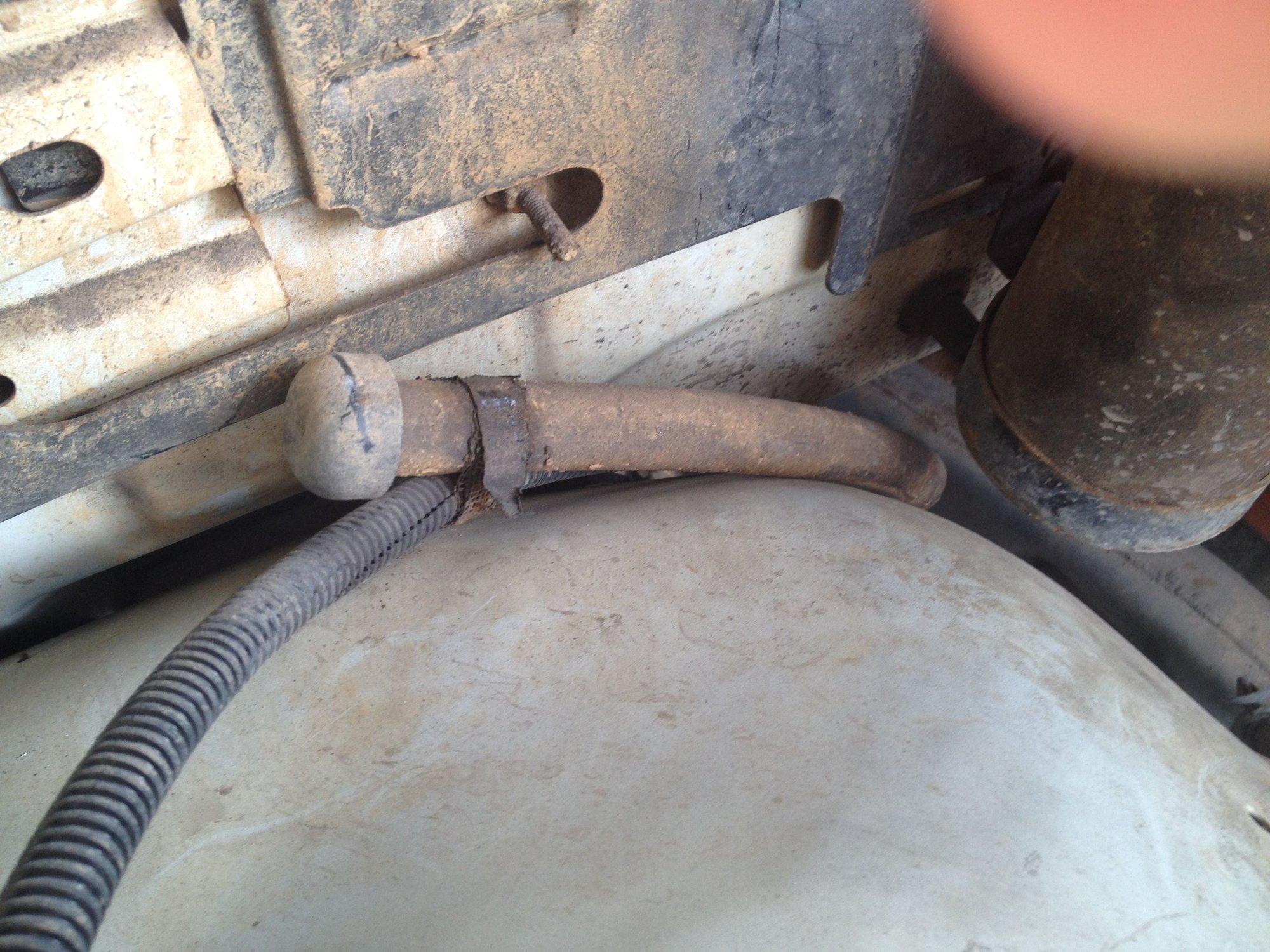 I think the hose is the front axle vent hose. If it goes down to the cad on the front axle, that's what it is, and it is correct.