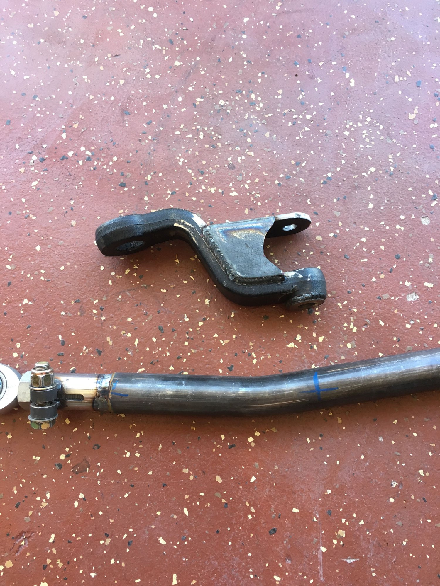 It is built using 1.5 x .250 wall DOM. It has double adjusters from Poly performance on one end of both the tie rod and drag link to make alignment a breeze. The tierod uses 7/8" offset rod ends from Barnes 4x4. this allows the tierod to be straight with no bends yet still clears the diff cover at full lock. The draglink uses standard 7/8" - 3 piece FK rod ends. the tubing is bent to clear the passenger side coil bucket at full right steering lock. the knuckle are drilled to allow 7/8" f911 hardware. The pitman are has been drilled as well and i made it to hold the rod end in double sheer.
