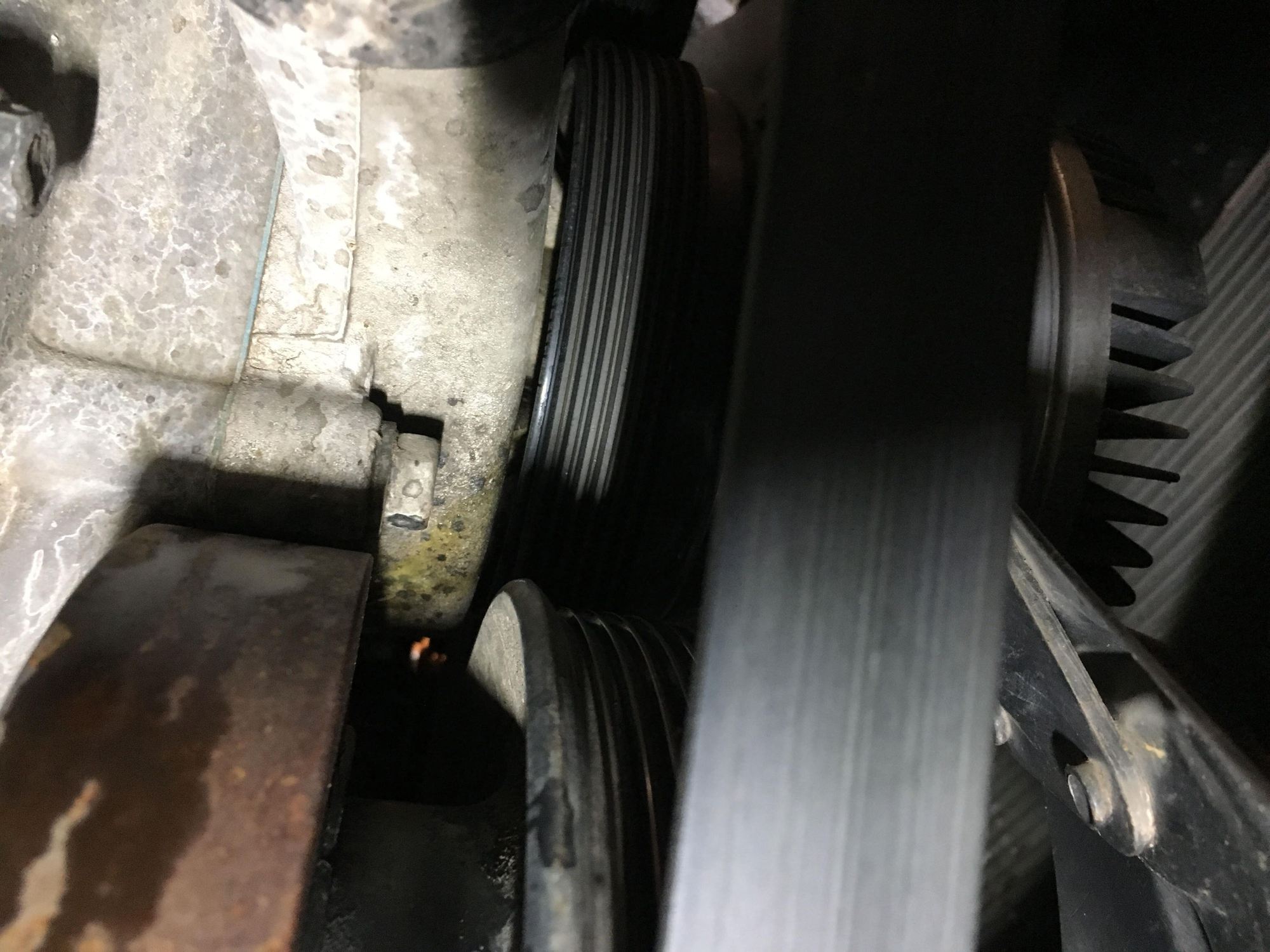 Hey everyone. Changing my oil yesterday and found that i had a good amount of water on my harmonic balancer. Looking further up I found it on the bottom of the water pump. Looks like shes starting to weep right behind the pulley. When I did my plenum (back in 2011?) I replaced the water pump with a brand new, not reman'd, water pump from napa. I only got 40,000 miles out of it. Pretty disappointed in that but I know sometimes it happens.