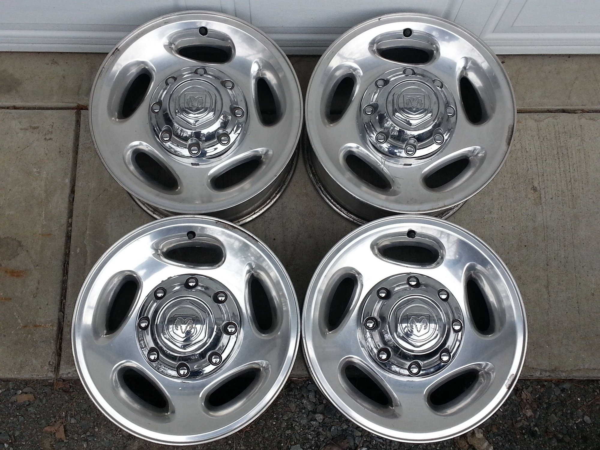 These are 16" x 8" Dodge OEM aluminum wheels used on some 2000-2001 Ram 2500 trucks. These will work on your truck, but you will have to alter the rear drum's stiffening rib on each side for them to fit. You will need to modify the rear drums for any wide 16" wheel that you might use. You can sometimes find these on Craigslist or Facebook Marketplace.