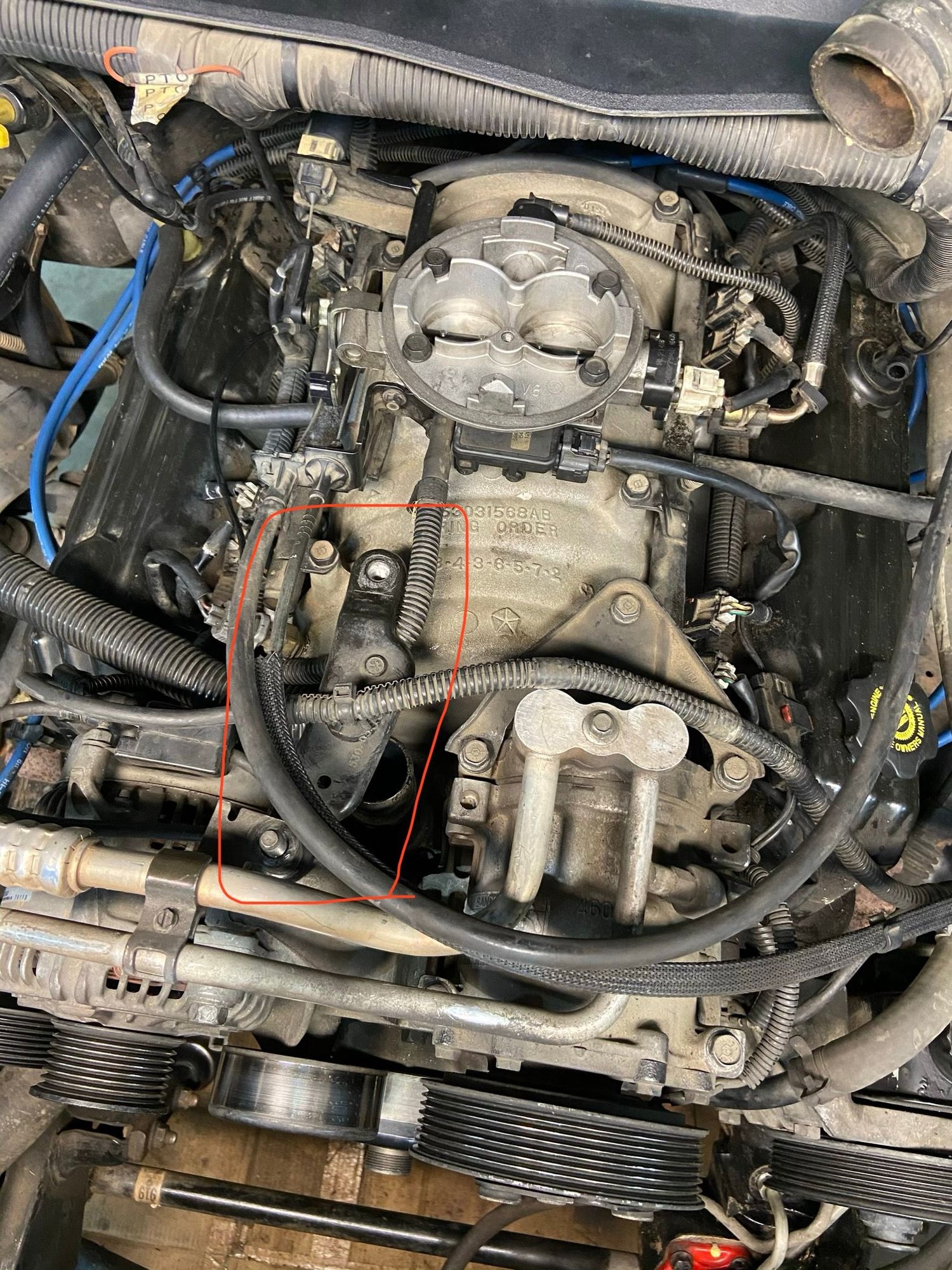 It attaches where that bolt is on the intake (left of the bracket in the pic)