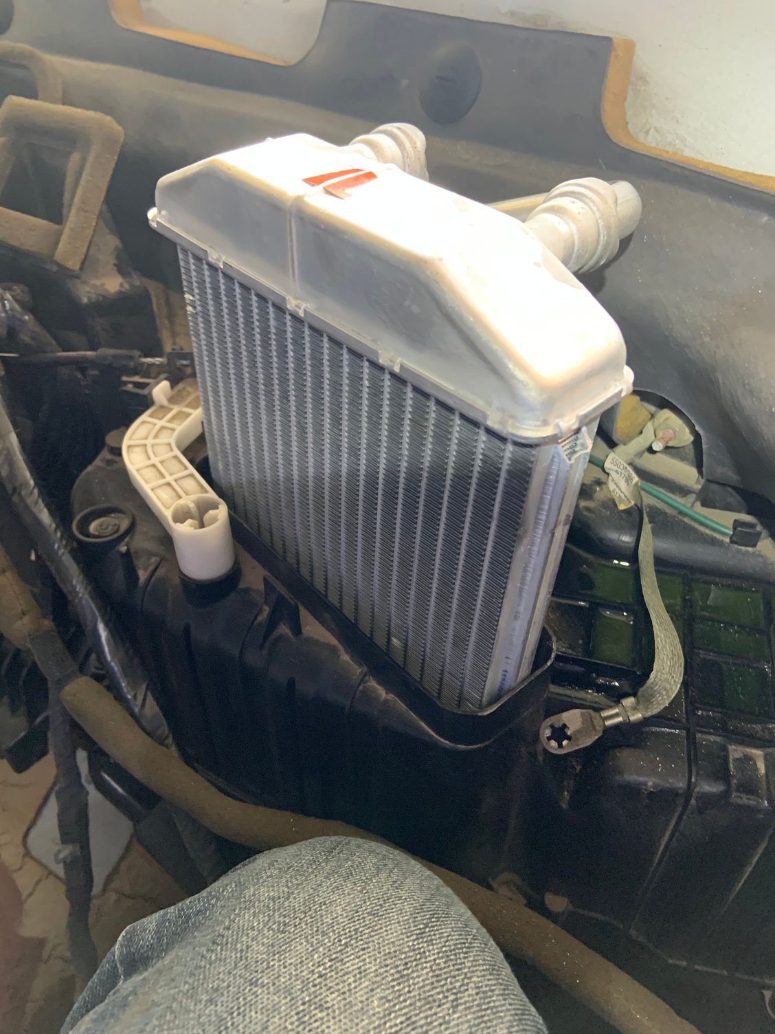 Still working on the dash project, I just replaced the heater core With an AutoZone Spectre Premium part number 398313. You can find the same part number on Amazon for about $20 cheaper. Overall the quality seems ok, but the stock OEM is much higher quality. I’m actually pretty impressed with how well it has held up at 279,000 miles. To get it out I used an angle grinder with a cut off wheel to simplify its removal and alleviate having to drop a whole box. The one nice feature with the specter hearer Corp was that the tubing was able to rotate to allow me to install it with the box still being in. It took a little patience and a screwdriver to leverage it in, but it went in all the same. The foam on the outside of the firewall had degraded. Use some 3M insulation tape to seal the firewall and that worked pretty well. We’ll see how well she holds up.