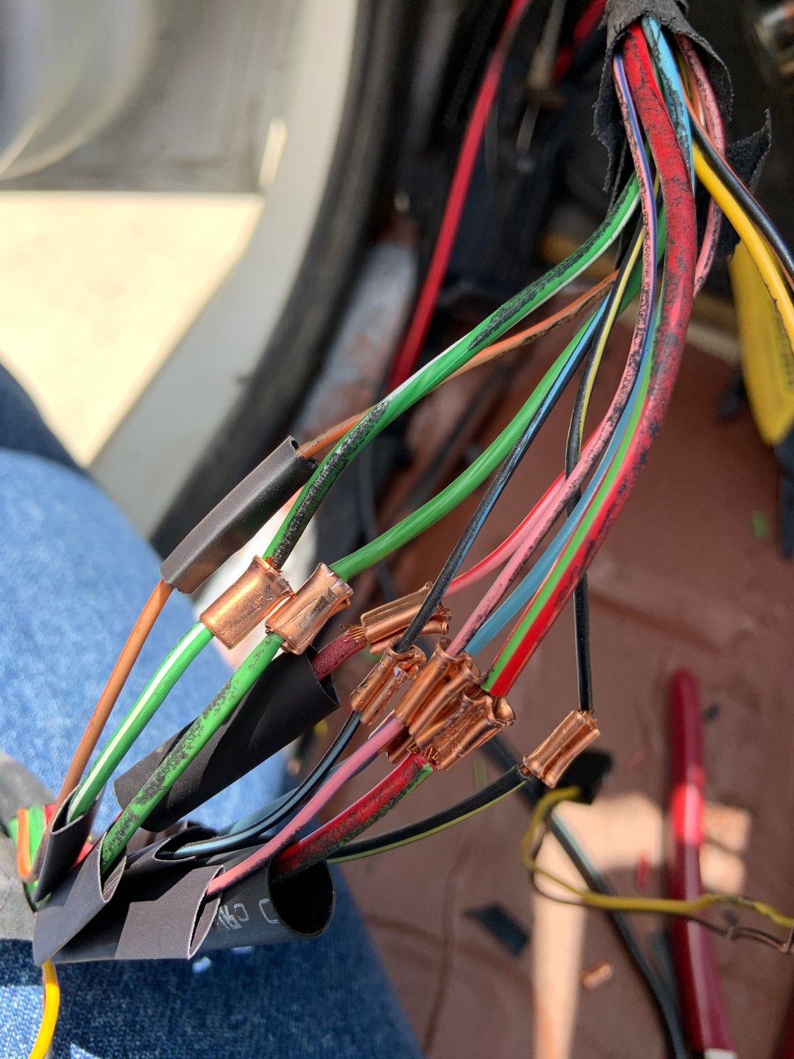 Like many of us my headlight started going out the switch is basically melted due to the fact there’s no relay for the headlights I had a donor harness that I spliced together using those barrel sleeve crimps.