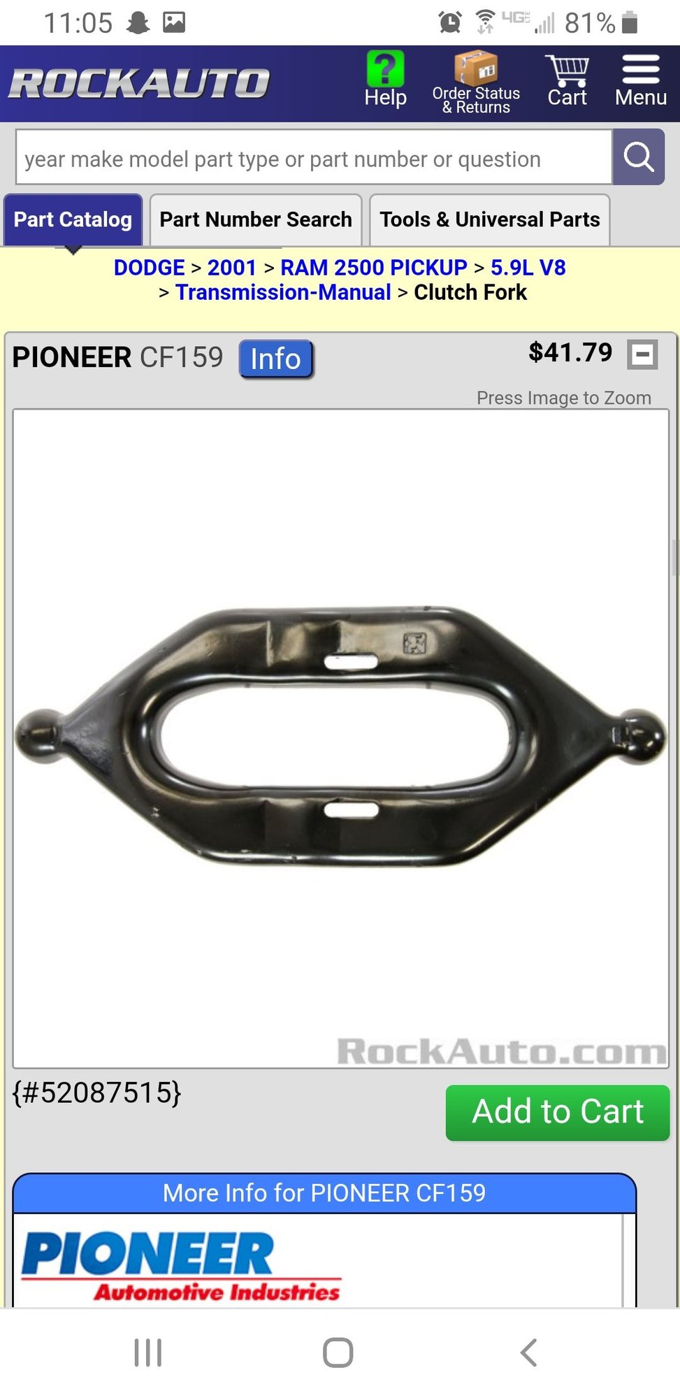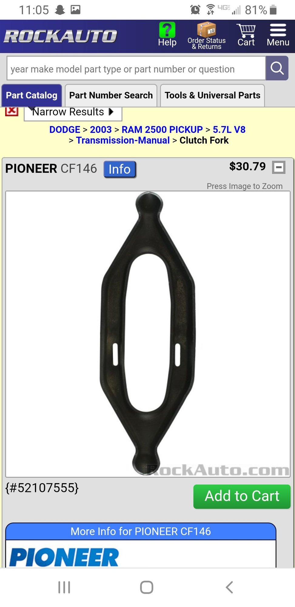 if your search was correct and the replacement is from a 2005 truck, the shift fork is different. Rockauto is showing different part numbers for the two trucks. 😔😔 The throwout bearing and pivot ball look to be the same though.