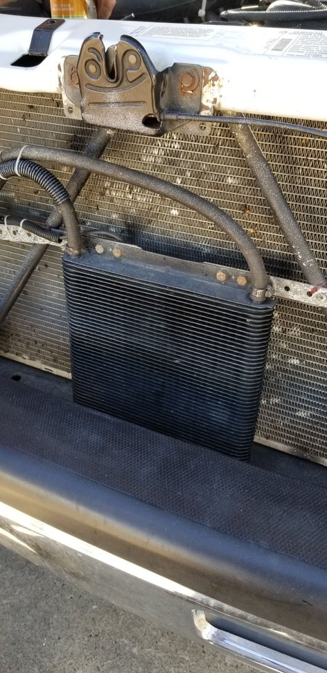 If you trans is getting hot, even with that cooler, think I would be looking for other causes as well. Do you know if the check valve in the trans cooler line has been removed?