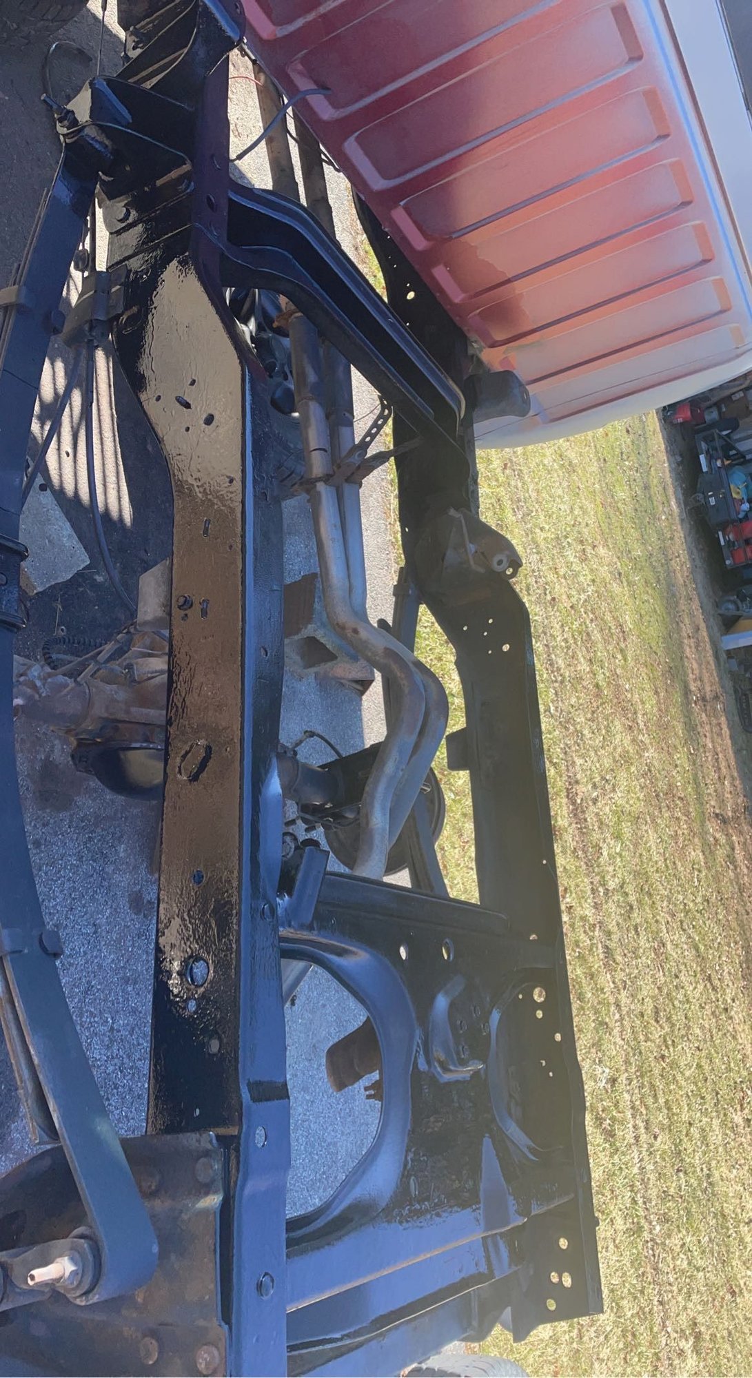 I have had a lot of threads on this forum and a lot of help with the truck and im glad to say the 360 mopar 5 speed swapped 2nd gen is almost done. Got all the suspension replaced and all i have to do now is put the trans and motor in. Hopefully in a month or 2 month itll be up and running. I dont have much time to work on it because of work but I am here to share it with everyone that helped and discussed the build with me. When it is running i will post here. Here are some pictures of how it has been going so far. It definitely isn't perfect.