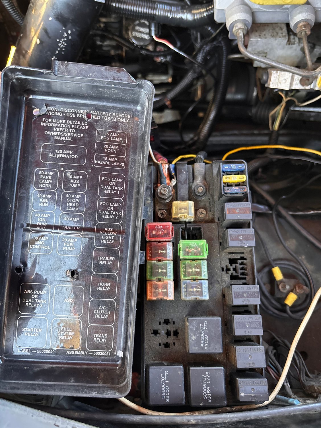 Yeah for reasons only the enlightened gods at Chrysler of days past know the rear wheel only ABS is not wired at the underhood fuse box/PDC at all. There are two fuses (14 and 20) in the inside fuse panel and no relays.