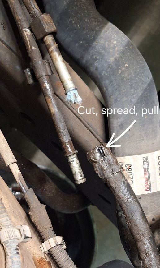 It's absurd to replace the entire hard line when there's nothing wrong with it. Things don't rust here. Most of the aftermarket offerings are crimped such that you can't just unthread and move the soft line over. Plus the Dorman offerings tend to leak at the push connect on the rad (shocking, I know)