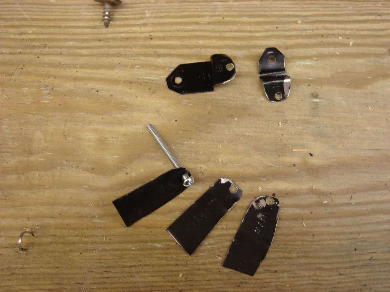 Now you may have noticed the factory speakers mounting points stick out beyond the speaker, something aftermarket speakers typically don't have. I made my own brackets for this, it's pretty easy to do. I took some sheet metal I had laying around and cut 6 strips of it roughly 1/2" wide by 2" long. I then took a 7/64 (#35) drill bit and drilled a hole as close to the end of each strip as possible.