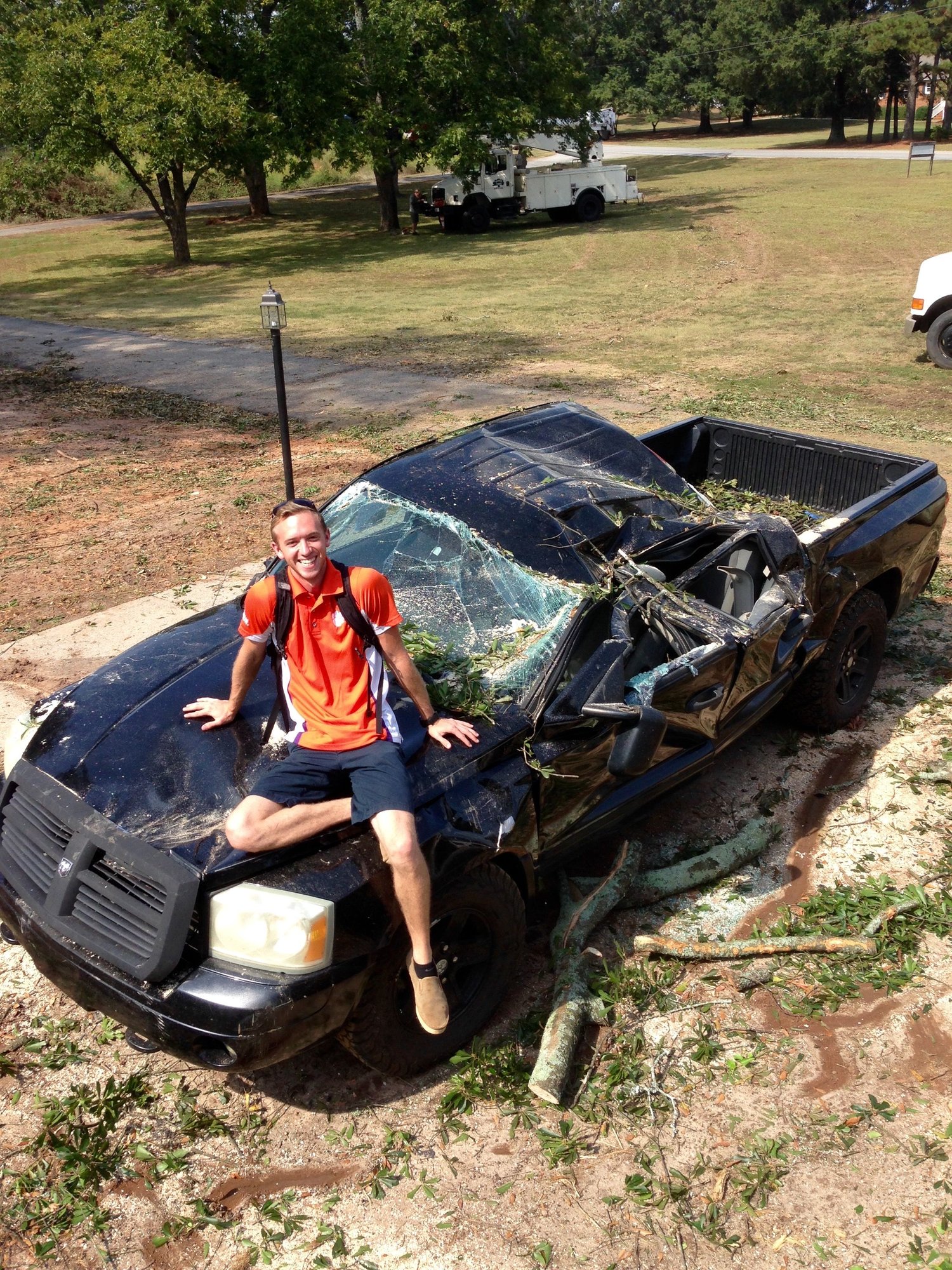 It happened at work. I was walking outside and the while d*** place started shaking. I opened the door and it there was a 4' trunk oak tree on the truck. No storm, wind or anything it just decided it wanted to lay down. Insurance is going to cover it and my boss is going to pay the deductible. Not sure what I'm going to get yet but definitely full sized if a truck. I out grew the Dak with so many tool cases in the back seat. I might go car-less for a while though and save up.. I'm in college and the bus system here is amazing so getting to class in easy and everywhere that's somewhere has a bus stop.