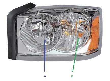 Ok now, my newly acquired 2005 Dakota is in the shop. So we have bulb "A" which is a High/Low H13 bulb. My question is, what is the bulb designated by "B" ? Is it an H13 with High/Low as well?