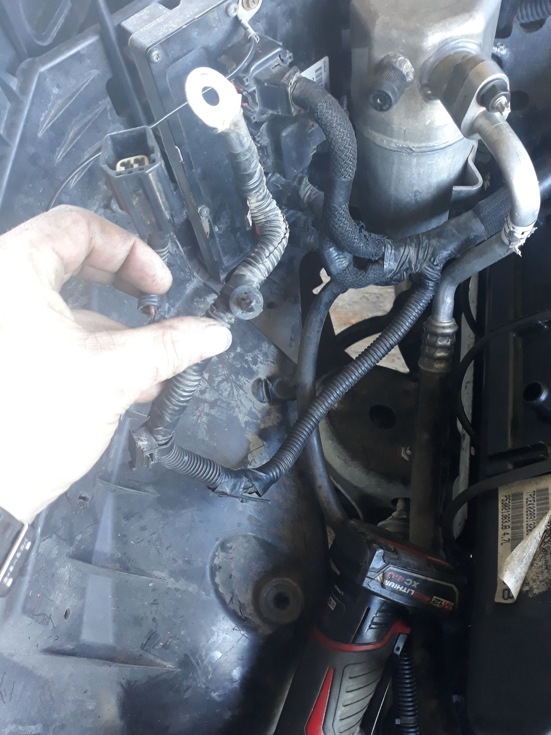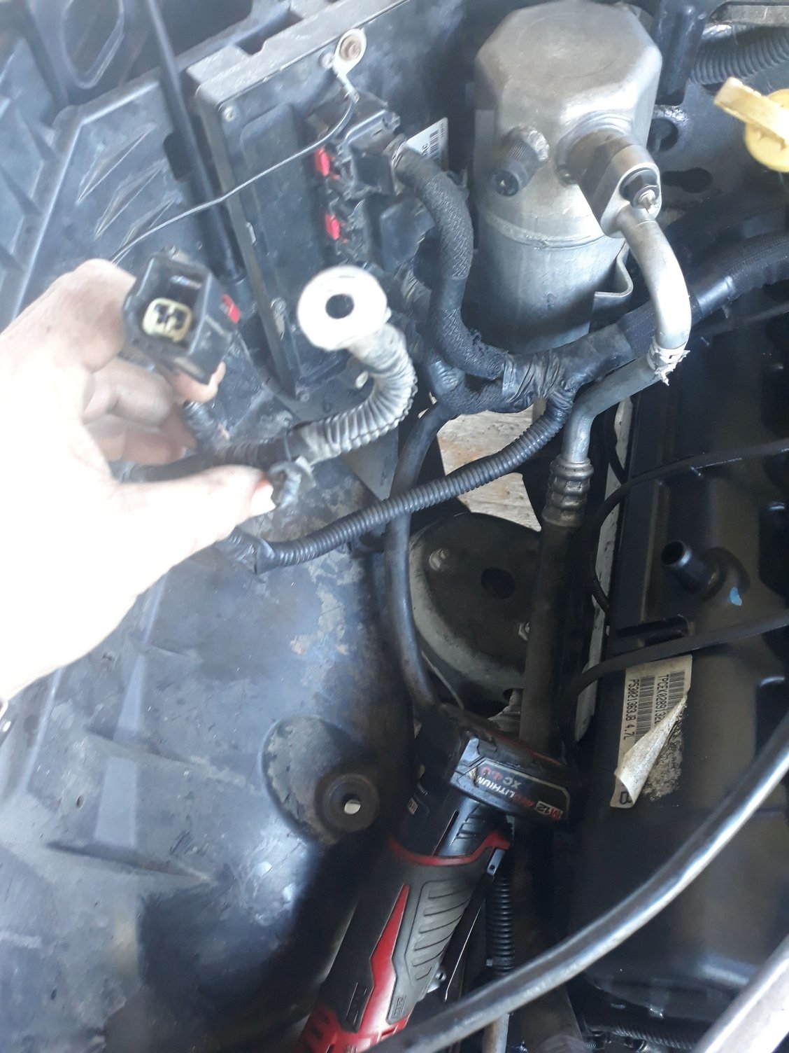So I had a knock in the 4.7 inside of my 2009 dakota so i removed the engine and had it rebuilt. But now that i have got it back in i can not for the life of me remember where and what these 2 connectors go to. I have tried searching around and trying to get ahold of the service manuals with no luck. If anyone has a similar truck it would so super helpful if they could follow the wires and see what they go to. One of them splits off right in front of the ac canister and one splits off right behind it the one that splits off in front also has a ground in the same loom with it.