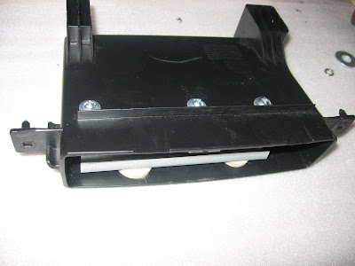 Now putting it all back together. Here is a shot of the parts back under the radio. Notice the rubber mat that is typically in the box. I cut it so it blends the front.