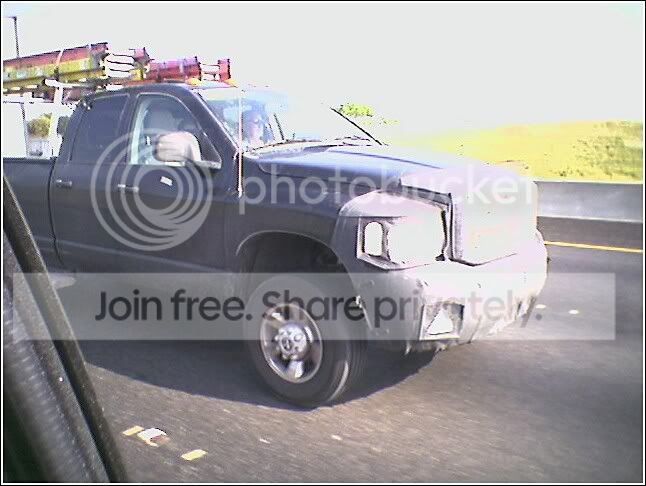 They have some testing place for new Chrysler Vehicles here in Corpus Christi and I always see them driving the new vehicle before they come out....but they usually cover them up a bit....took these pics on the way to work this morning on the highway with my camera phone, Its the new body style Dodge Ram, but it wasn't the Mega Cab, it was the quad cab....they put a lotta weight and wind resistance behind them to test them during workload conditions