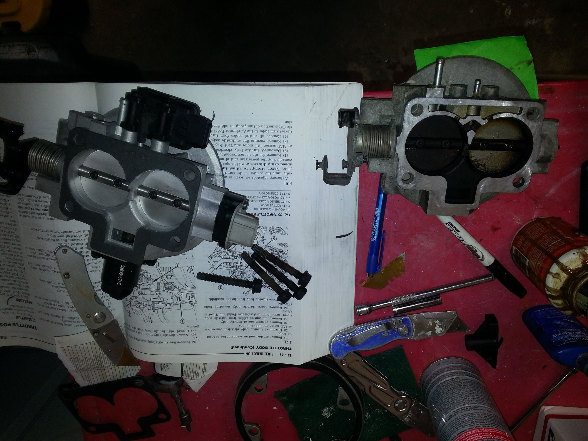 I'd be interested in seeing what the inside of the plenum looks like. Does the MAP sensor port come out on both sides in the new t-body? Is your TPS oriented the right way? I thought the connector was on top? I could be wrong...