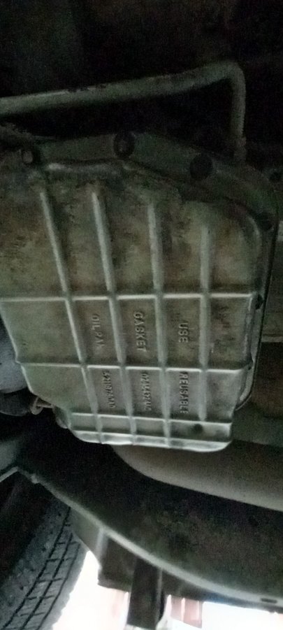it has a corner that sticks out on one end like a turbo 400 and a 45 degree cut corner at other end My pan but im still not sure what transmission it is