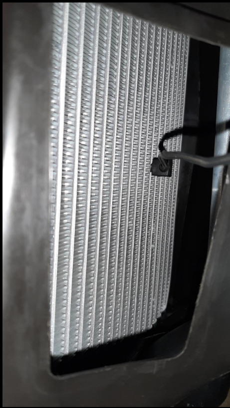 Luckily on the 3rd gen NS vans, access to inspect and clean the evaporator core is pretty easy via the temperature probe cover, which pops off and on easily. This enables cleaning the core with the aerosol cleaner you mentioned. It also gives me the idea of using a regular home a/c foam filter if I can figure a way to attach it. The evaporator probe cover behind the glove box gives access to the front of the evaporator core. The temp probe cover is just held in by a rubber gasket and can be popped in and out easily. Access only requires removal of glove box door, which is easy. Inside the evaporator probe door there's a clear view of the evaporator core. This is the new core I installed. I may try to insert one of these portable home a/c foam filters in front of the evaporator. I may need to hang the foam by some plastic pins inserted into the evaporator core. I haven't thought this out enough yet. These foam filters come in different thicknesses so it's probably best to buy one of the thicker ones rather than a flimsy thin one. Also, it's probably necessary to put some kind of spacer between the filter and the evaporator core, as exists on portable home a/c's, like some kind of plastic grid spacer. This will prevent the filter from retaining water on the front of the fins, which might accelerate corrosion.