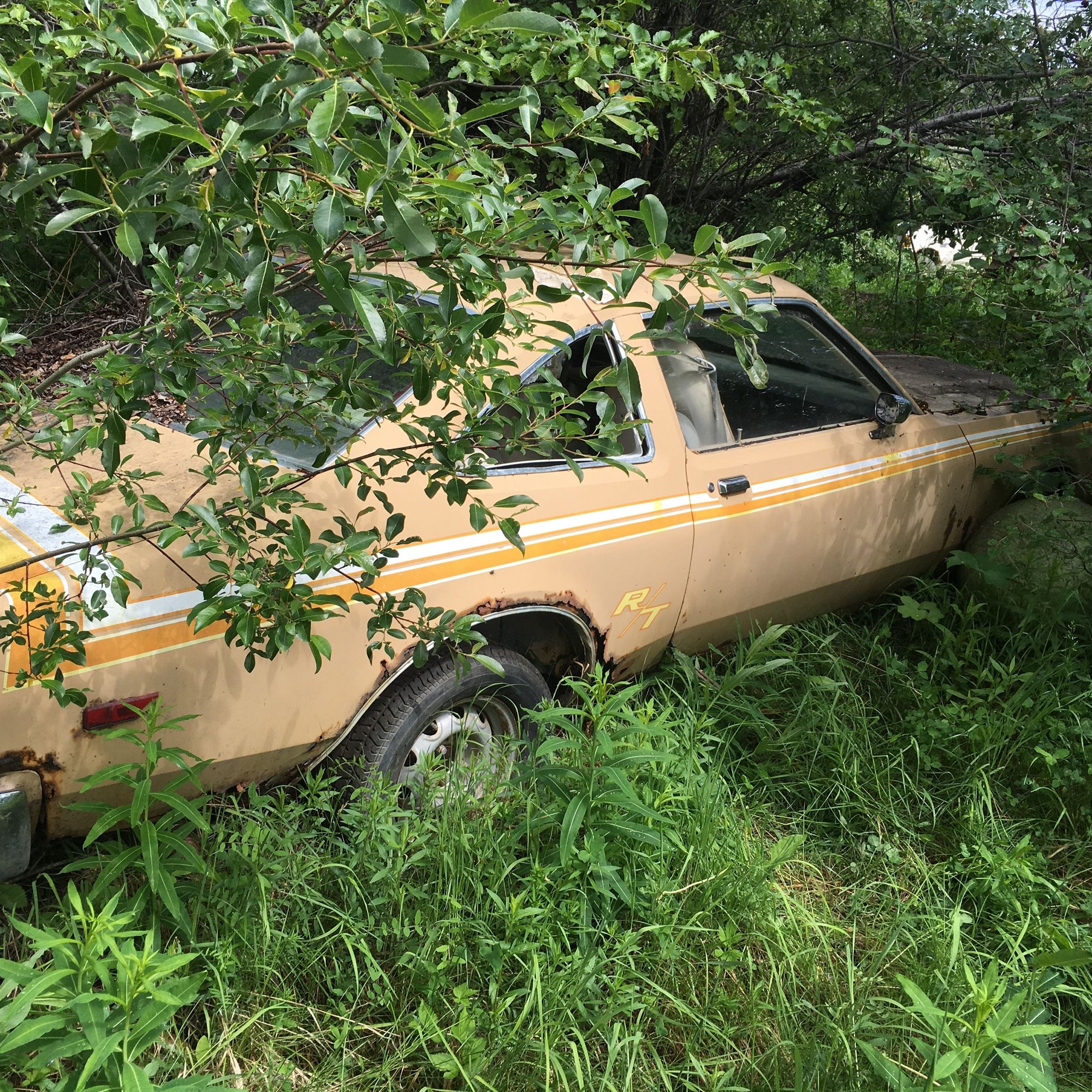 It's an Aspen R/T...has the racing stripe and R/T badge by the rear fender. If it has the 360 option it's a rare bird...most came with the 318. They clean up nice and would be a fun project.