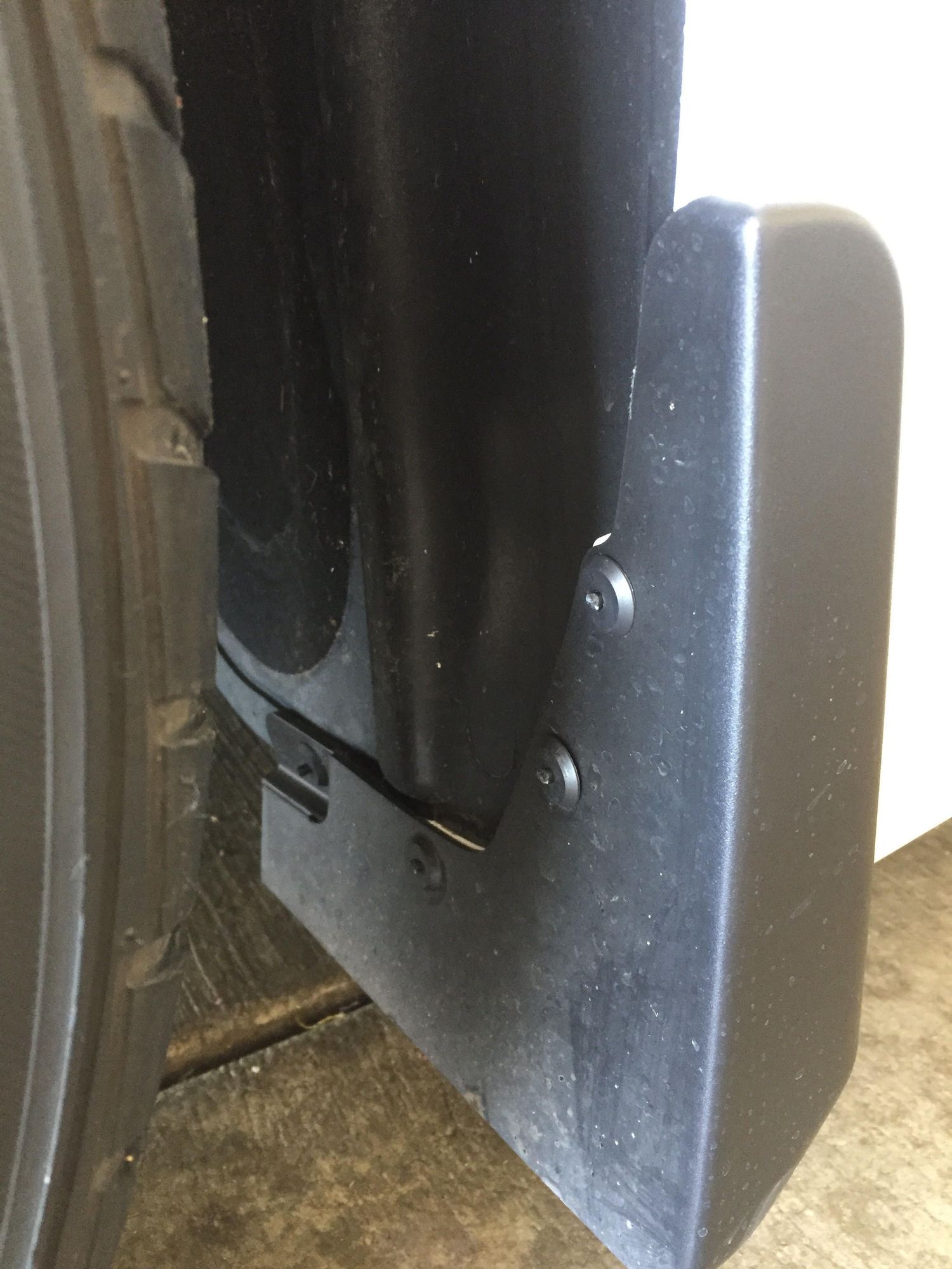 Rear splash installed with purchased push-lock pins.