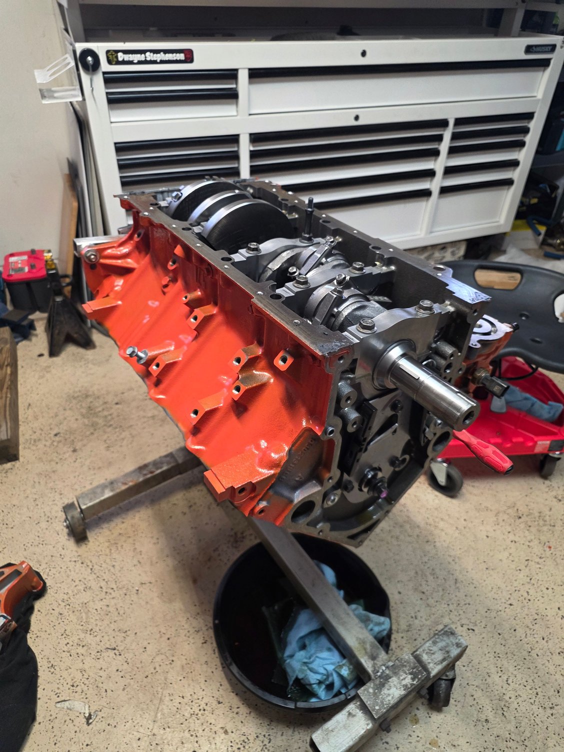The new engine, tore apart....It was completely assembled. This engine was an original Mopar crate motor assembled in 2014. I bought it from a friend of a friend for $2500. I had it all painted and looking good. This is where the crap hit the fan and I created a disaster.