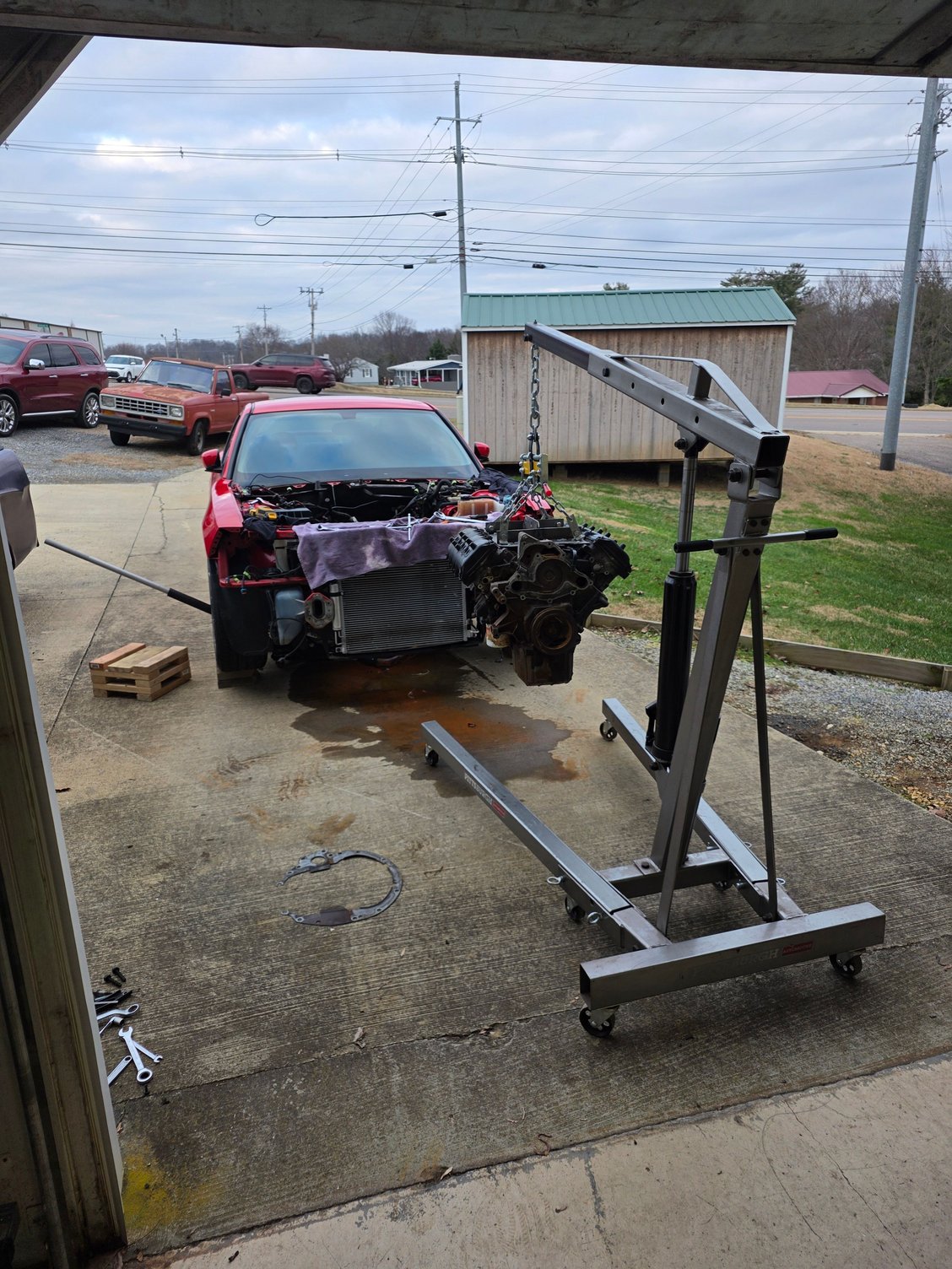 1st picture- Intake off, engine plate on, engine ready to pull.