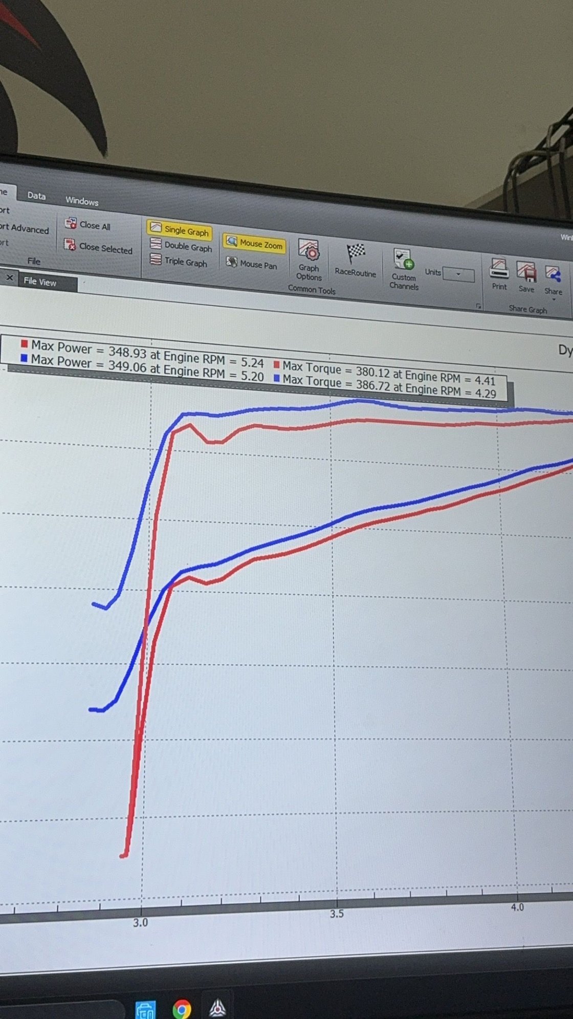 That said, the stock HP rating is 370, getting 350 to the rear wheels is actually quite good. Most folks figure a 25-30% driveline loss..... So, you are building some good power there.