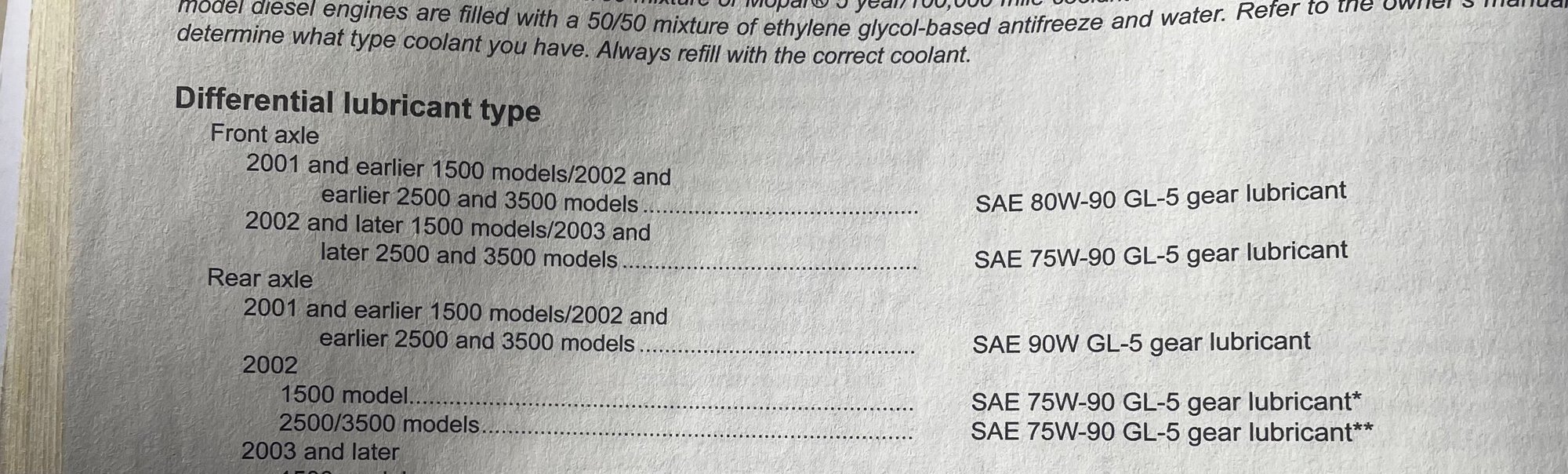 I’ve just replaced the rear diff gasket, and am about to fill with fresh fluid. I have the Haynes manual, image below from the differential lubricant types and capacity page. By checking my VIN number, I know I have an ‘anti-spin differential rear axle’. It’s a Dana 70.