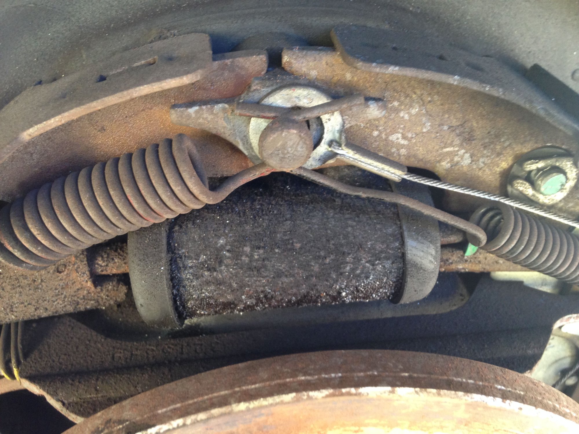 The cylenders are toast. i'm surprised to see 1/4" of brake shoe left. It looks like some of the springs were replaced two or more years ago. I know I didn't do it.