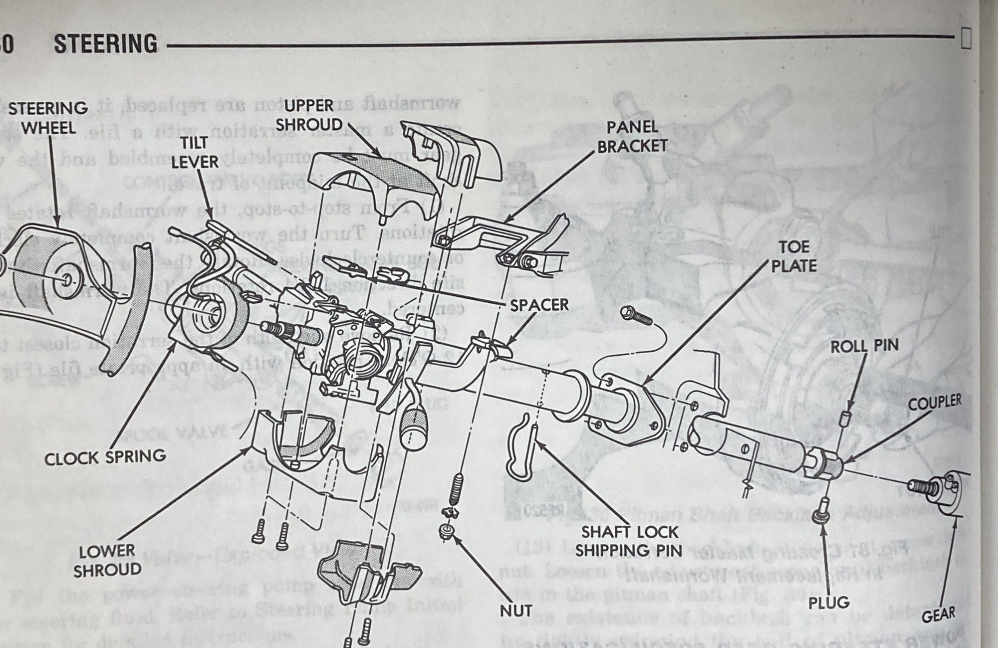 Also, wear in the u-joint part of the steering shaft is a known source of slack in these old Dodges. See example here: