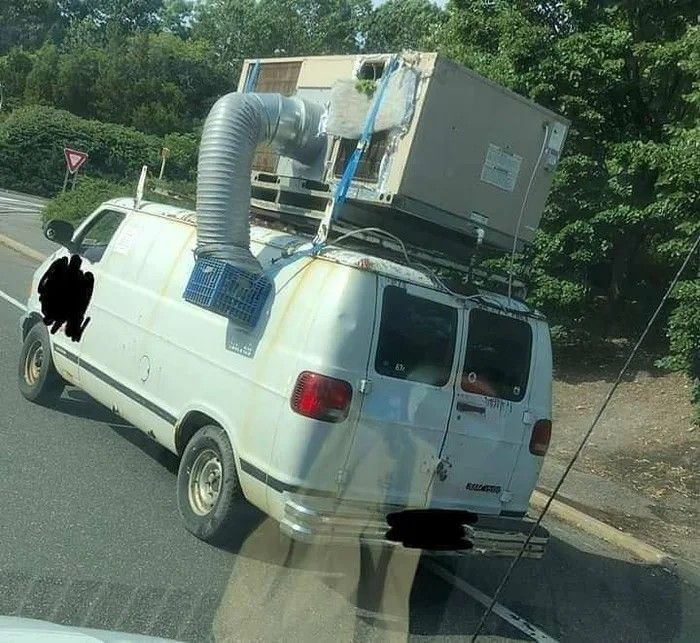 I've seen those on and off over the years. Do they work? Sort of. Do they work well? Not really. It's like the electric blower turbochargers. Those work but are ungainly. On the electric a/c units, it wouldn't cost much more to get a street rod add on unit and mount it under the dash. If seen those spit ice out at the inside.
