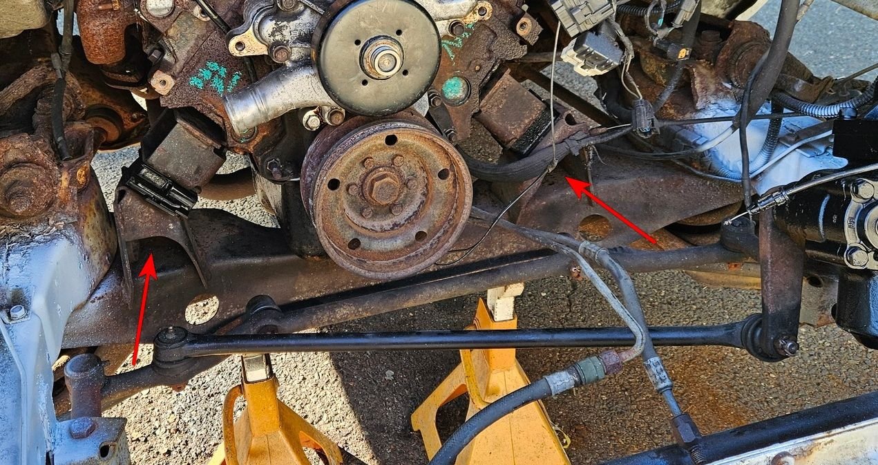 Tip: On the motor mount next to the threaded stud is a bump that allows the mount to fit only one correct way, so pay attention to how they are positioned when you remove the mounts. Oh and, penetrating oil is your best friend here.