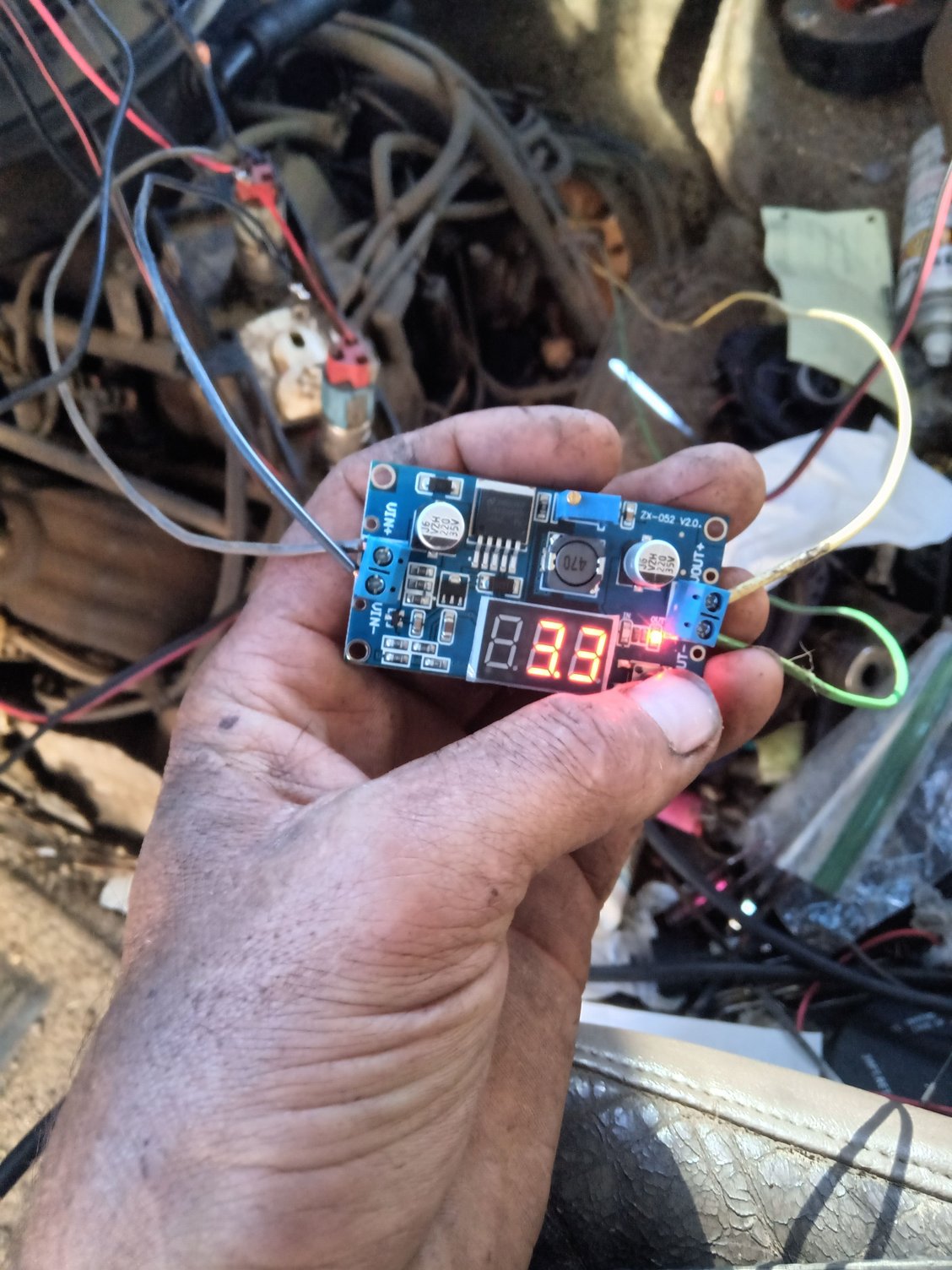 This way, as I am driving, I can apply around 1.5v (I will get a highway speed voltage reading as I brought the wires into the cab.)